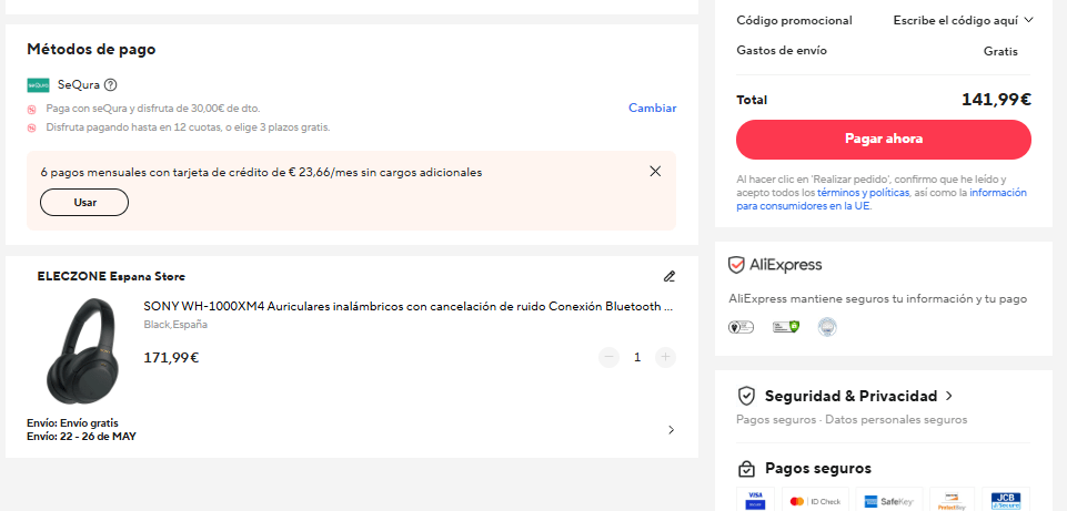 Para conseguir ese precio en forma de pago elegimos SeQura.