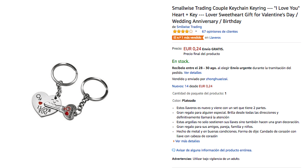Llavero par de regalo para enamorados por un precio especial de 0,24€ en Amazon.