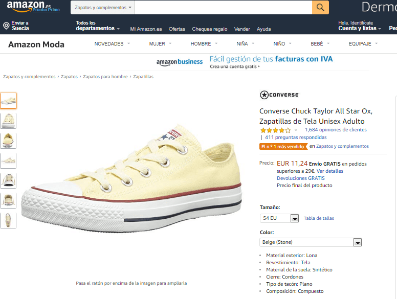 Compra estas Zapatillas Converse en tela Chuck Taylor All Star Ox, la numero 1 vendida on line, unisex a tan solo 11,24€ en Amazon.