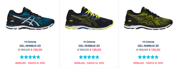 Oferta de semana con descuentos del 50% en productos seleccionados Asics.