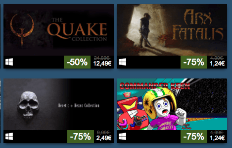 Oferta en descuentos de hasta el 70% en videojuegos variados como parte del Quakecon hasta el lunes 13 de agosto.